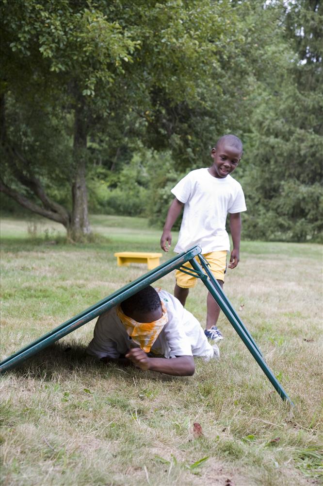 Youth navigate a blindfolded obstacle course at the Get Up, Get Out & Go! finale in August 2007. || Cuyahoga Valley National Park (CVNP) and Cuyahoga Valley National Park Association present Get Up, Get Out & Go!, an urban outreach program introducing kids ages 11 to 14 and their families to recreational opportunities along the Ohio & Erie Canal Towpath Trail in the greater Akron (Ohio) area. This free summer series targets residents in the urban neighborhoods surrounding the Towpath Trail in Akron but is open to all participants.