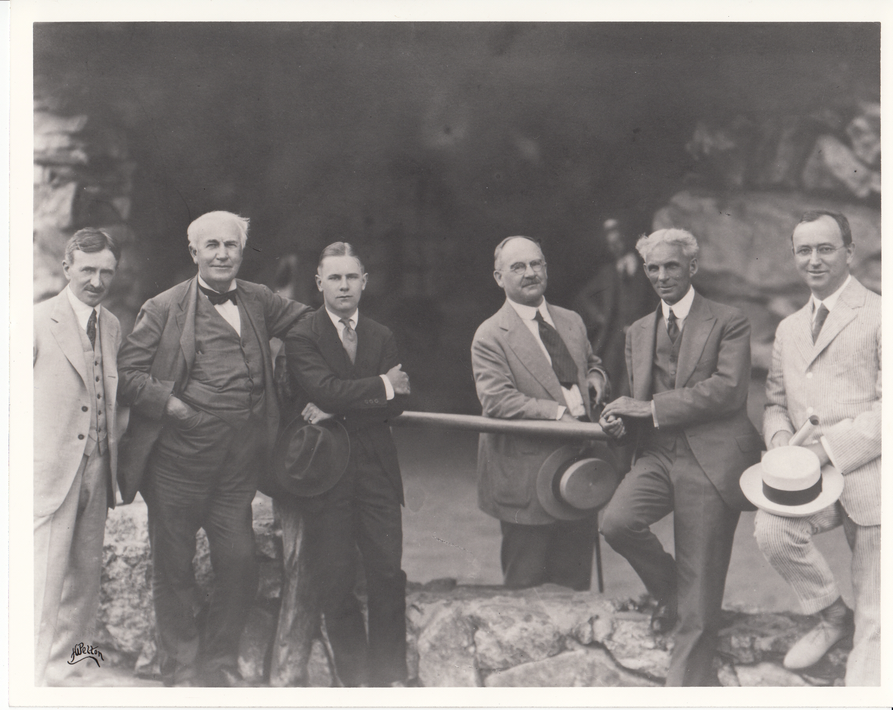 Harvey Firestone, Thomas Edison, Harvey Firestone Jr., Henry Ford, and two other men on California trip.