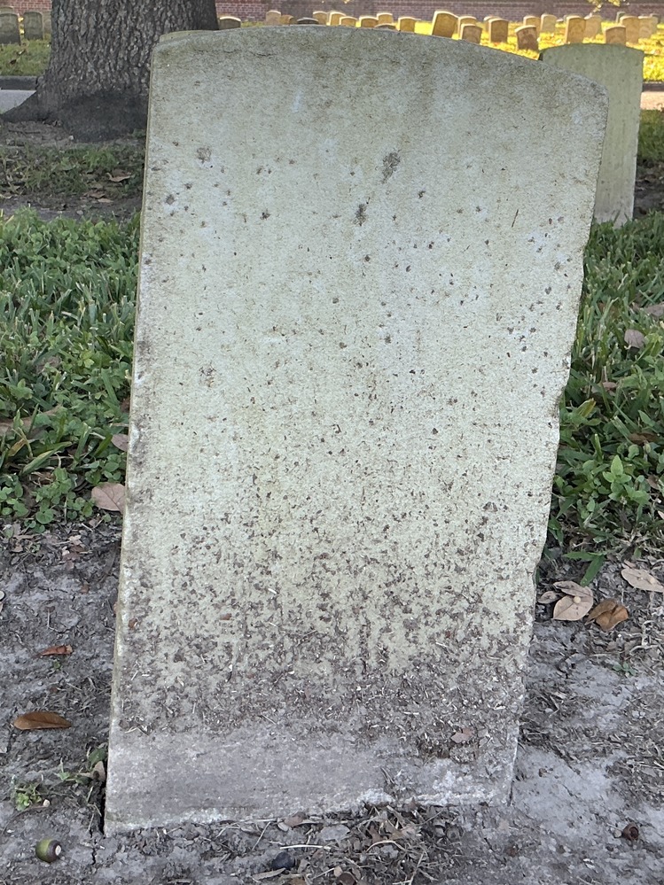Back of historic upright marble headstone with recessed shield face.