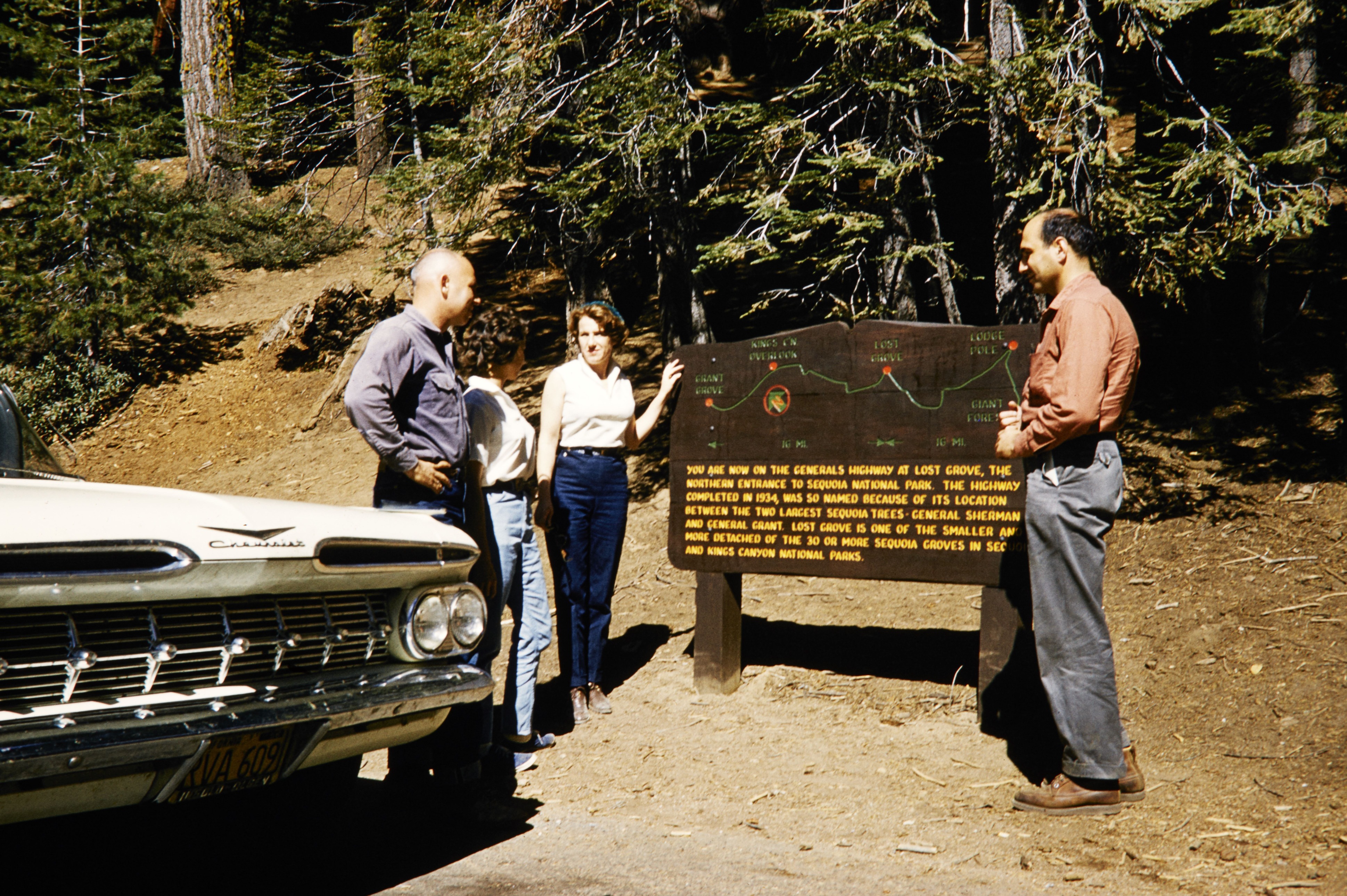 Mission 66 roadside exhibt for the Generals Highway at Lost Grove in Sequoia and Kings Canyon Natioal Park. Image Number Waso Co 4656.