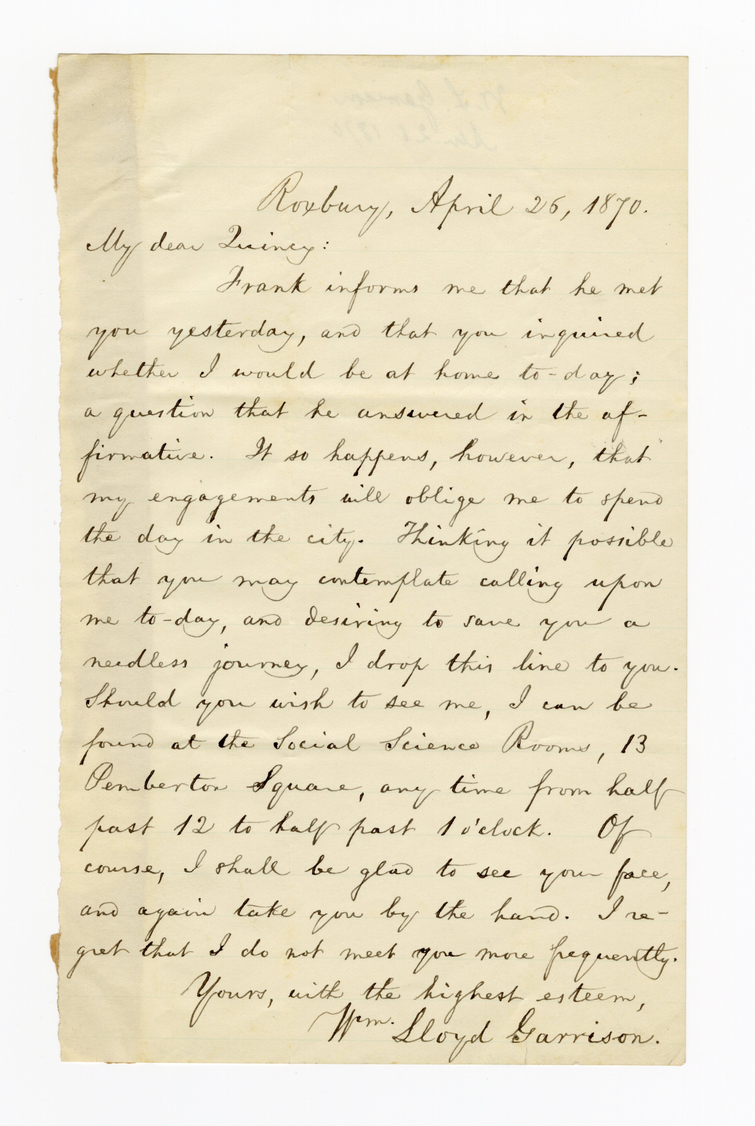 William Lloyd Garrison to Edmund Quincy, 26 April 1870