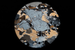 Circular microscopic image of rock structure.