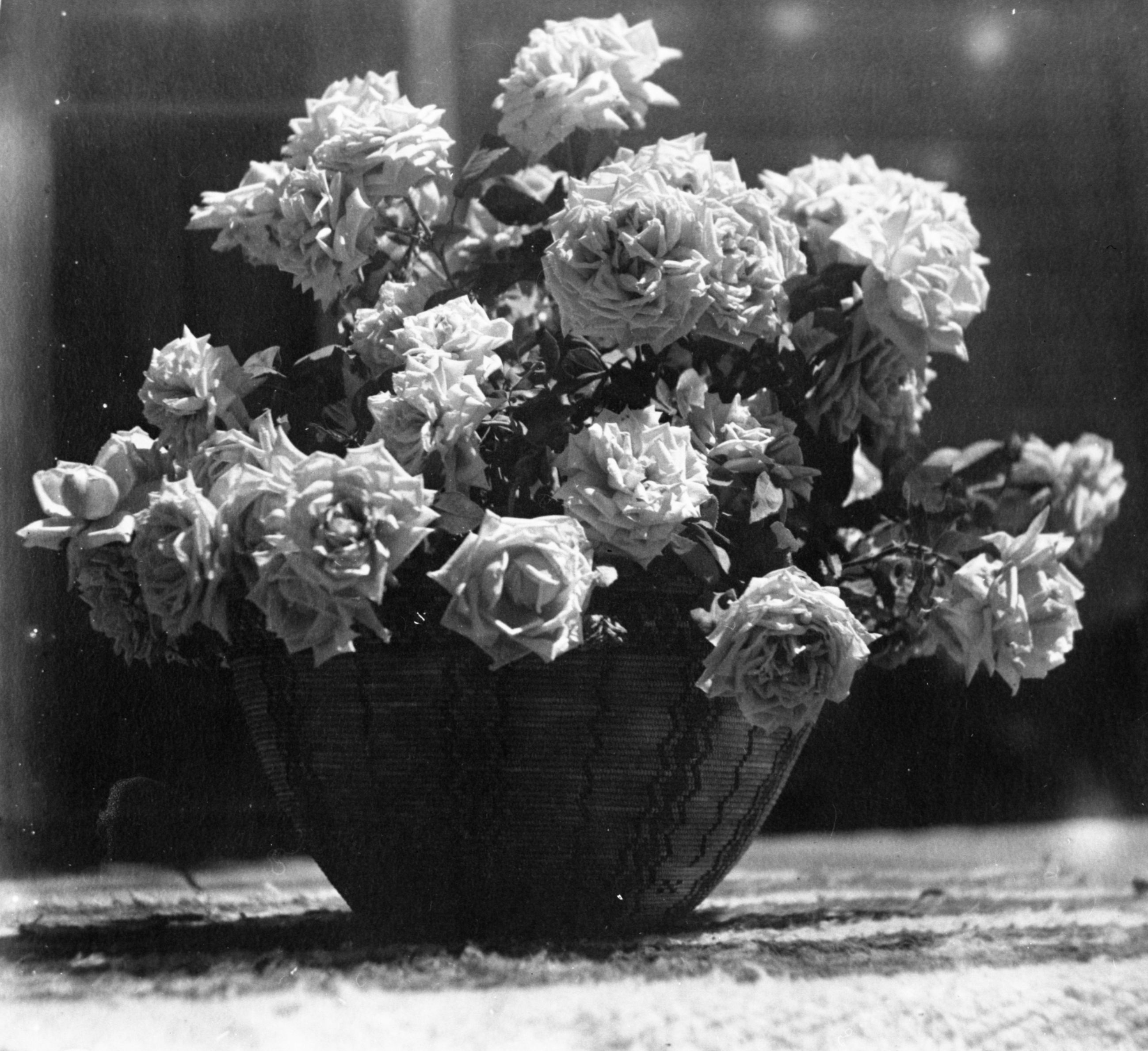 Floral arrangement in Miwok basket by Mrs. Wm. (Etta Grace) Sell, Sr. c. 1910. Copied from originals in YNP Collection.