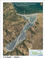 Proposed Project Area for Prisoners Harbor Wetland Restoration. Channel Islands National Park proposes to restore ecosystem function to the disturbed coastal wetland at Prisoners Harbor and the riparian corridor in the lower Canada del Puerto.