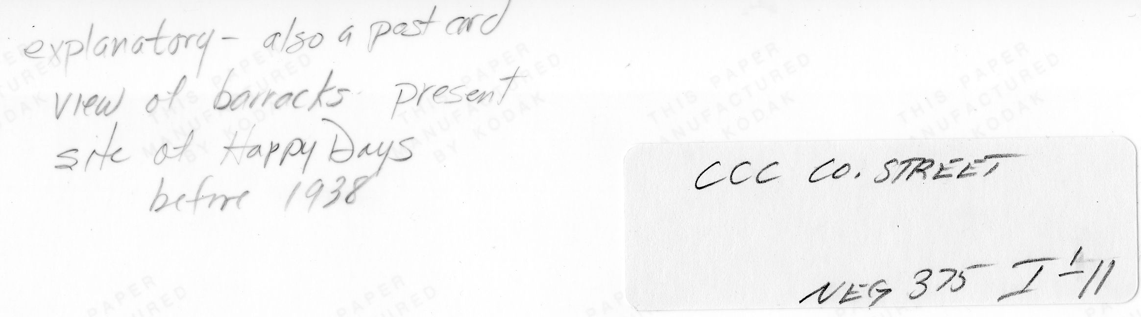 Kendall Barracks (located at current site of Happy Days Lodge), Civilian Conservation Corps ca. 1932-4. See scan of writing on the back of each image for additional details. || Many of the historic structures in the Virginia Kendall unit of Cuyahoga Valley National Park were built by Civilian Conservation Corps workers during the 1930s.