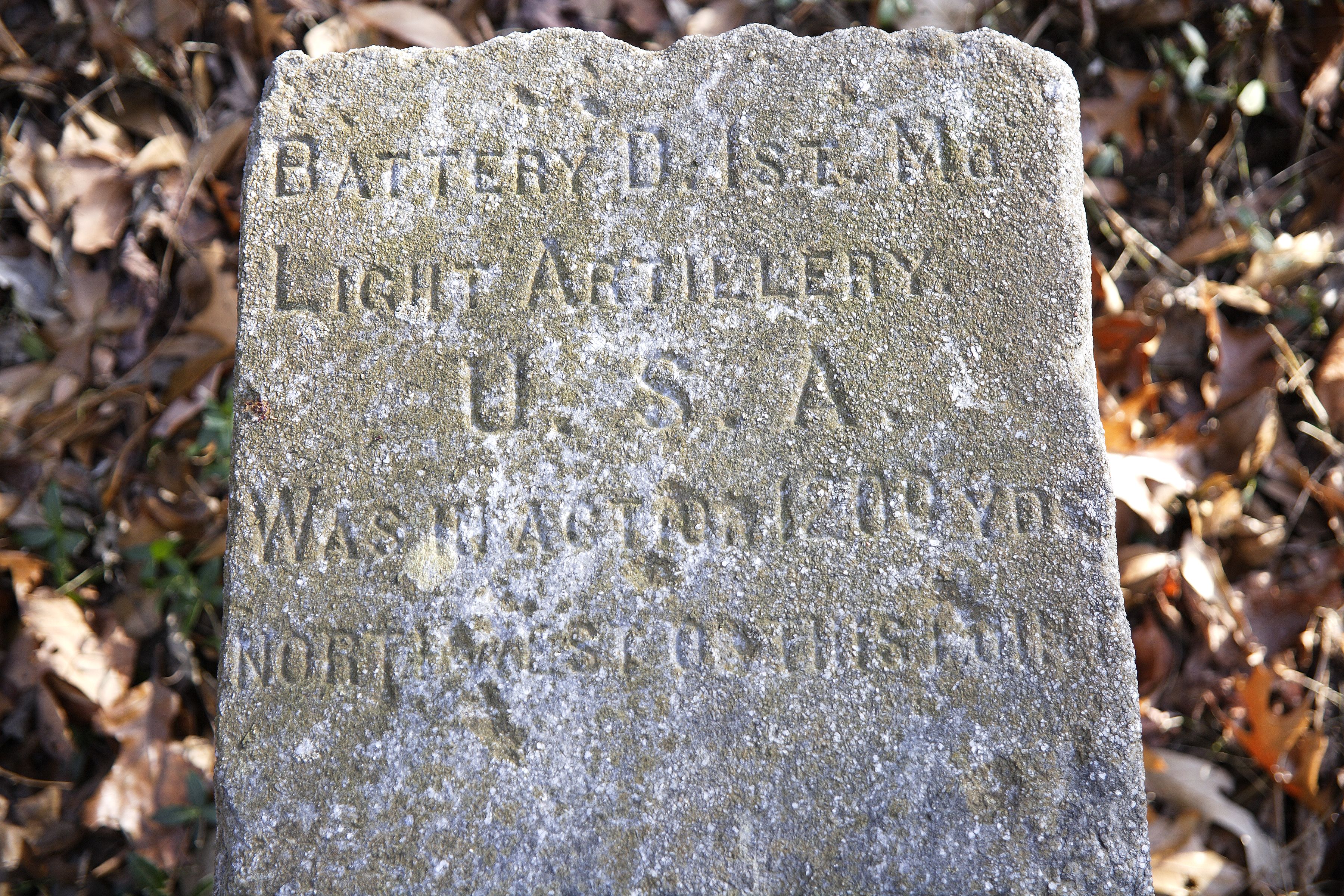 Marker contributes to nat'l significance of park under NR Criterion A because it represents the national movement among veterans & related groups to commemorate Civil War battlefields. || A simple 15" x 15" x 3' marble shaft with a slanting inscribed top marking unit's position during the battle.