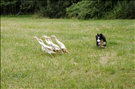 Shepherd demonstrates his dog's herding skills using domestic ducks. Images taken in summer at The Spicy Lamb Farm in Peninsula, Ohio. || The Spicy Lamb Farm is one of eight farms in Cuyahoga Valley National Park's Countryside Initiative. This program invites farmers to live and farm in the national park using sustainable methods that do not adversely affect resources. The aim of the Countryside Initiative is to preserve the Cuyahoga Valley's rural heritage (especially historic farm properties) and to demonstrate best practices in growing healthy, local farm products. Spicy Lamb Farm raises Dorset sheep as showstock and for all-natural wool and hide products. In the summer, they held a blessing ceremony for their flock and demonstrated herding techniques.