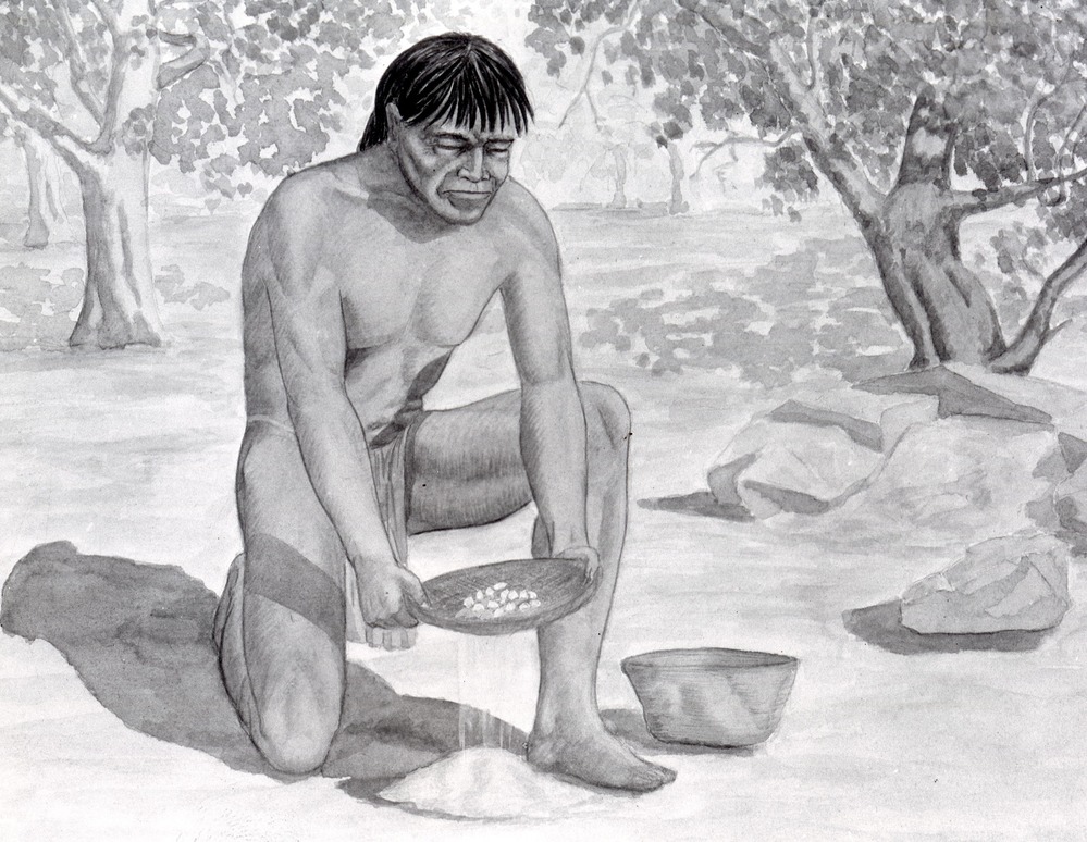 Grinding olive sea shells for Yosemite Native American jewelry. Copy of drawing.