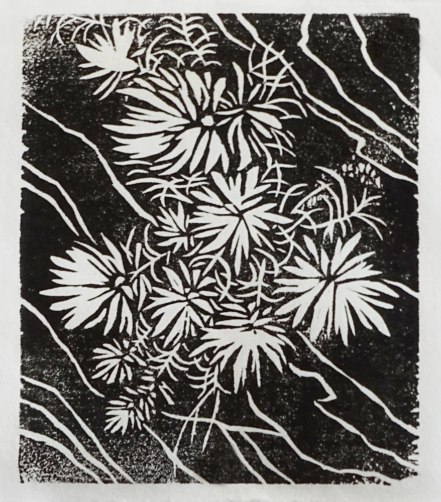 Hannah Sandvold, Woodcut with black ink on paper, April 2021