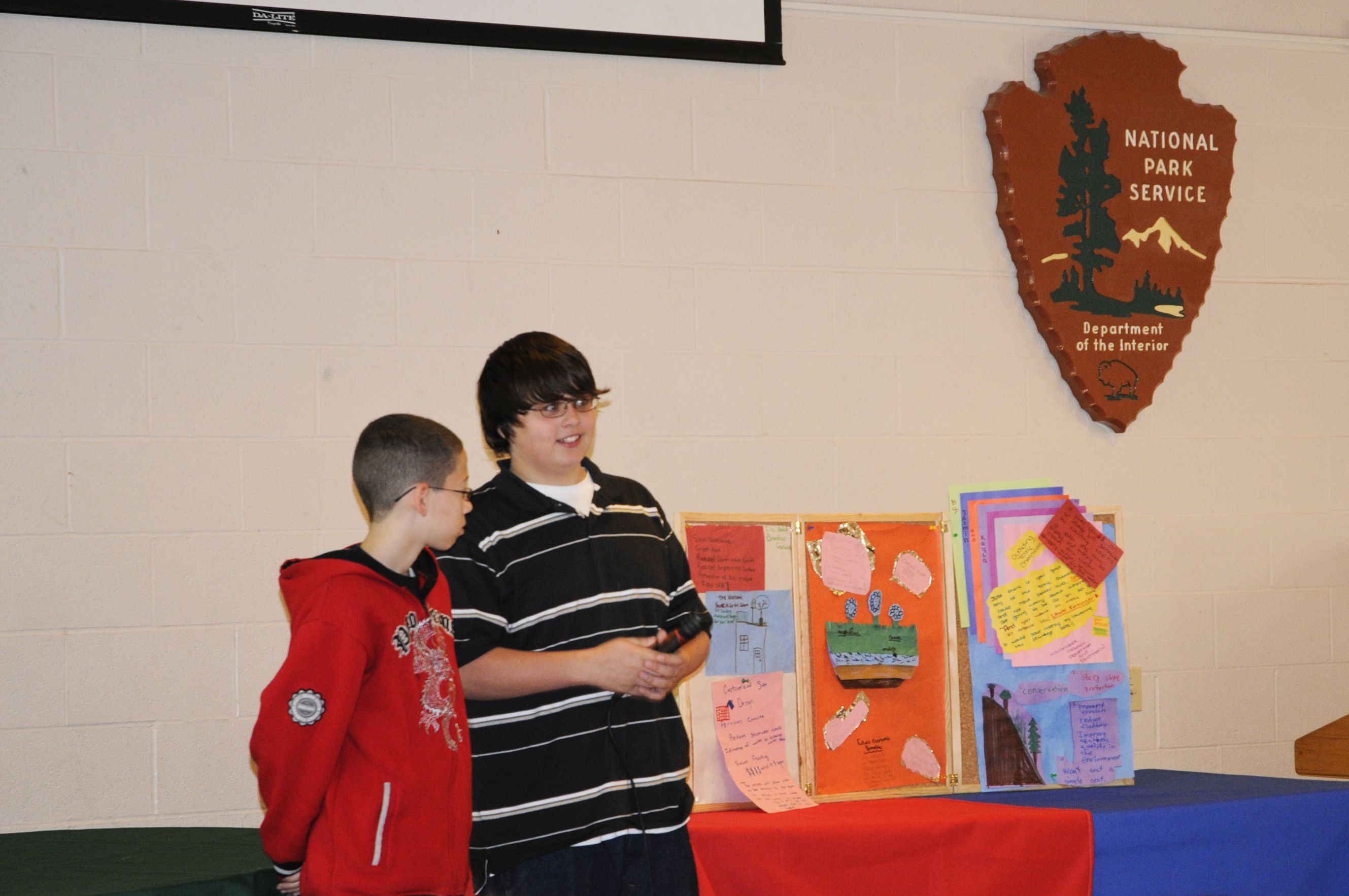 Throughout the Level 2 curriculum, middle school students have been learning about low-impact development (LID) and applying it to planning a residential housing development on specific pieces of land bordering the national park. Here they are finalizing their site development ideas and practicing their presentations for the Planning Commission meeting on the final day. || The Cuyahoga Valley Environmental Education Center's residential program provides fourth through eighth grade classes an overnight educational experience that integrates science, nature study, environmental issues, and the arts. Students learn natural history and the concepts of watershed, biodiversity, and habitat. In addition, environmental issues and the process of environmental decision-making are explored. The curriculum is designed to meet state standards and teach proficiency skills, especially in science and social studies.