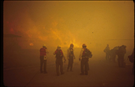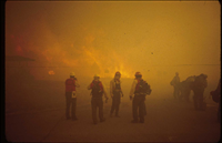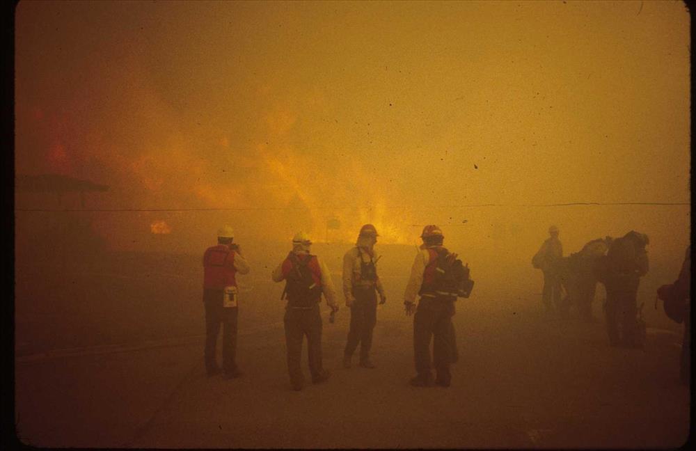 Firefighters provide structural protection to commercial buildings during the Bircher fire, Mesa Verde National Park, July 2000