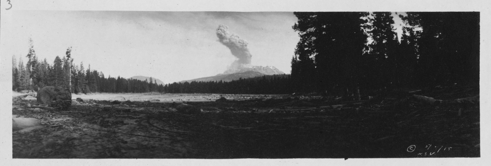 William Holmes Spaulding Photograph Collection: Lassen Peak in eruption from Lost Camp area of Lost Creek.