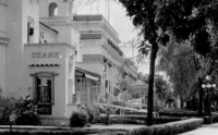 The word "Ozark" on the side of a white building announces the name of one of the bathhouses in the row.
