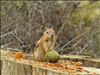 Golden-mantled ground squirrel (Callospermophilus lateralis) enjoying a bite. Winter is on its way, so golden-mantled ground squirrels are busy eating, eating, eating. This tactic of eating as much as possible allows them to survive hibernation, which is a long winter snooze from October until May. The genus name Callospermophilus literally means 'seed-loving'. Seeds, forbs and insects are nutritious wholefoods that help the squirrel build up a thick layer of fat needed for a long winter's leep. NOTE: please do not feed wildlife.