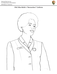 Coloring page featuring Miss Rolle's 1962 "Stewardess" uniform. Uniform consists of jacket and shirt with shawl collars. Jacket has 3 buttons but only two are visible. She is not wearing the pillbox hat. Her skirt, shoes, and stockings are not visible.