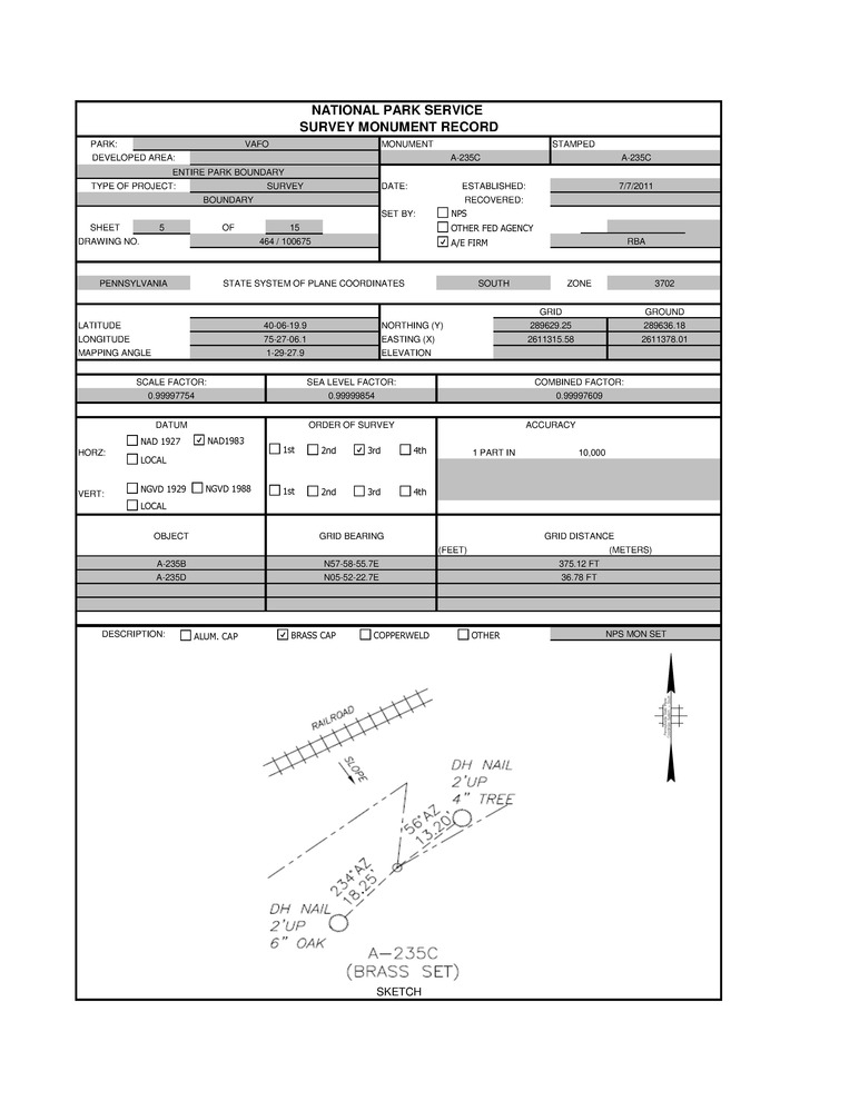 VAFO A-235C NPS Survey Monument Record Sheet pdf