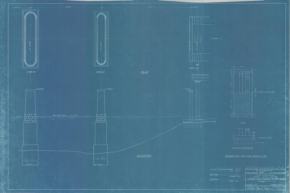020 Lower Hackensack River Bridge--Plan and elevation--Pier nos. 1E to 4E--Jersey City, NJ [1927.02.02] Sheet no. 20