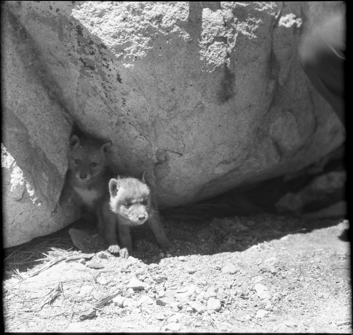 Joseph Dixon, 340530, Kern River Canyon, SNP, Misc. Mammals, Two coyote pups, at Kern Hot Springs.