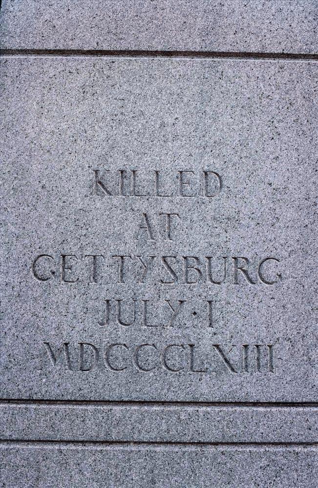Third oldest monument in park/cemetery. Erected to memory of Maj. Gen. John F. Reynolds. Position overlooks area where "he gave up his life." Located in National Cemetery near Baltimore Pike gates.