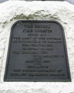 1 of 90 mns in Park honoring NY commands in Gettysburg Campaign. Marks position reached by 73 NY, 2nd Fire Zouaves of Excelsior Brigade on July 2, 1863. Located in field E of Emmitsburg Rd & N of Wheatfield Rd what was Sherfy's Peach Orchard. || Rough-hewn base, 8'x7', statues & shaft, 4'x3', 7' high. All 14' high. 2 bronze figures, fireman & infantyman atop base. Inscription tablets, 3'x2' on E/W, 2'x2' on N/S. State seal at base on W side.