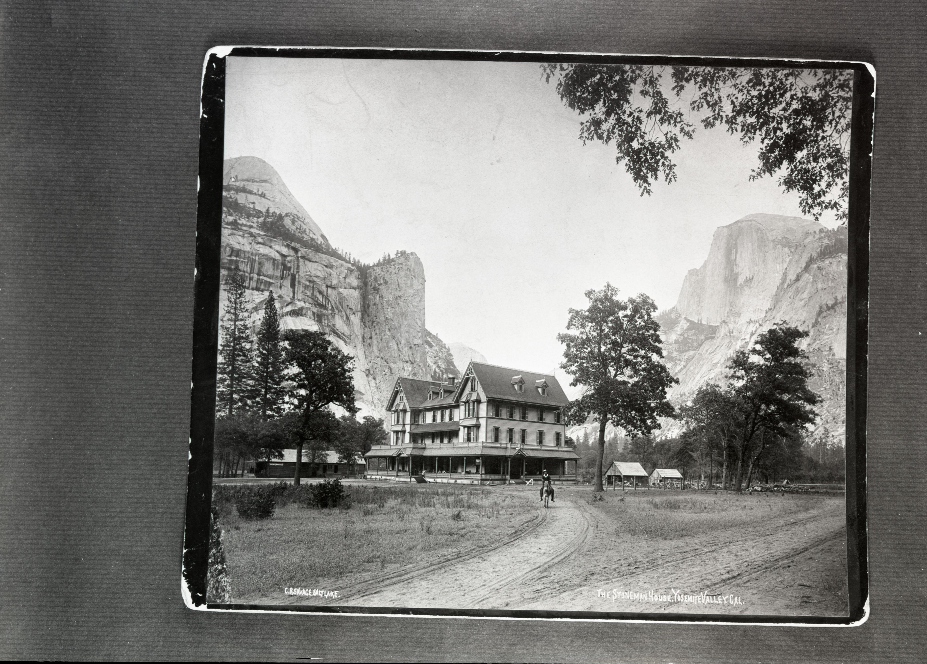 Copied from an old Fiske photo by Phillips (over). Muir thought the pretentious Stoneman House, 1887–1896, had a silly look. (YNP collection).