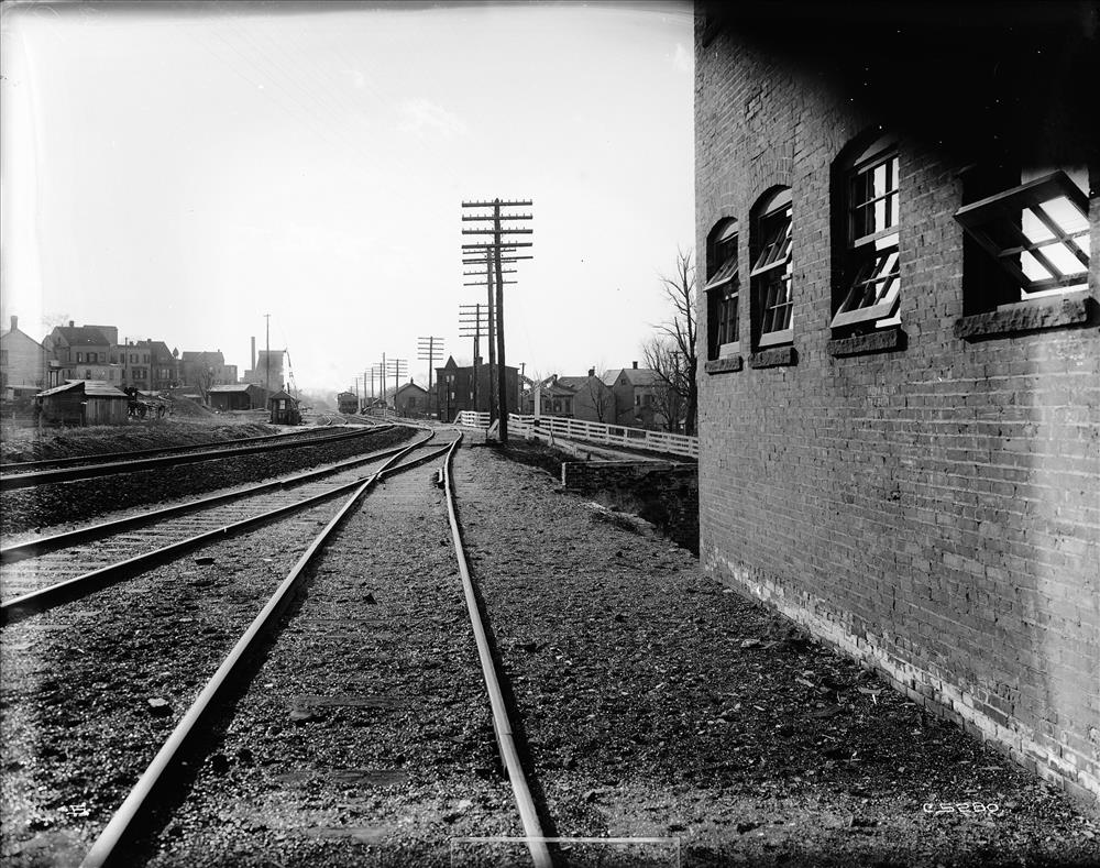 C5280 Looks west--Turner/New Street crossing is in the foreground--The local drill engine with one coal hopper is down at the Caldwell Avenue crossing