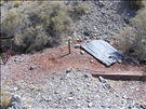 Contaminated tailings above wash at Copper Glint Mill, an abandoned ore processing mill on Mojave National Preserve. Copper Glint Mill is located about 2 miles north of Interstate 15 (I-15) near Mountain Pass, CA. The site has concentrations of heavy metals above human health and ecological risk levels.