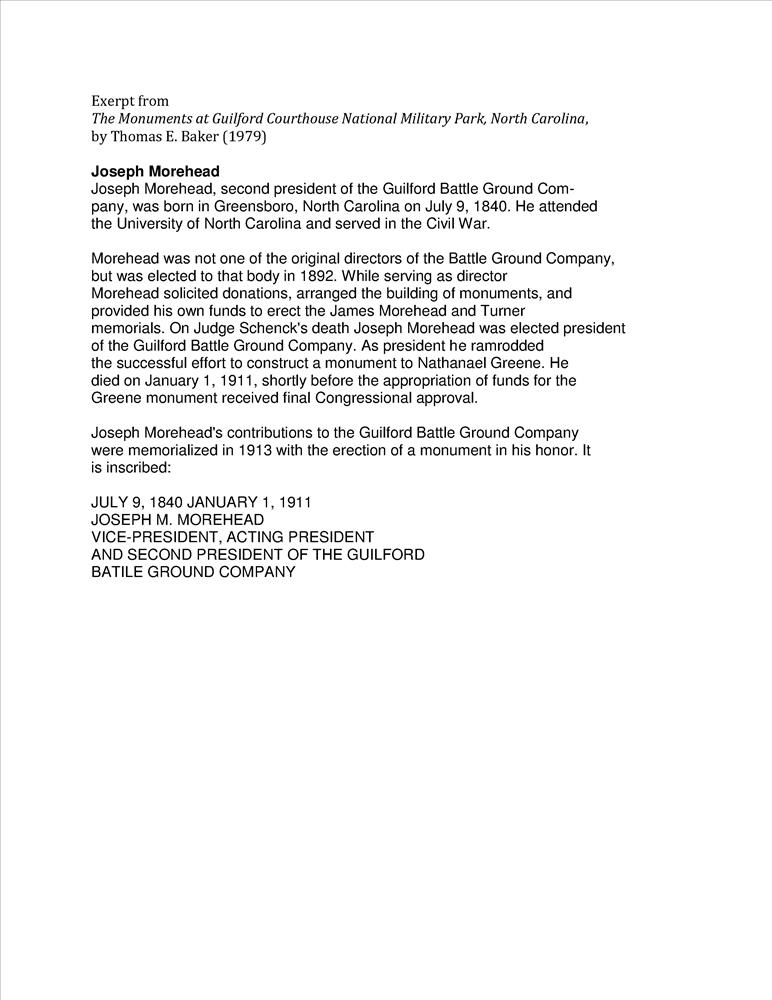 Exerpt from "The Monuments at Guilford Courthouse National Military Park, North Carolina," by Thomas E. Baker (1979)