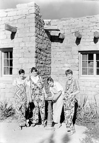Ziegfeld Quartette at fountain of Community House, Mesa Verde National Park.
