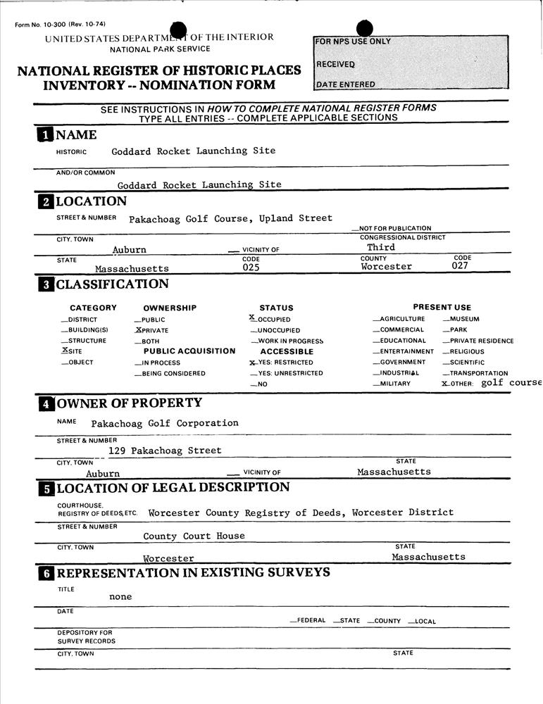 Goddard Rocket Launching Site