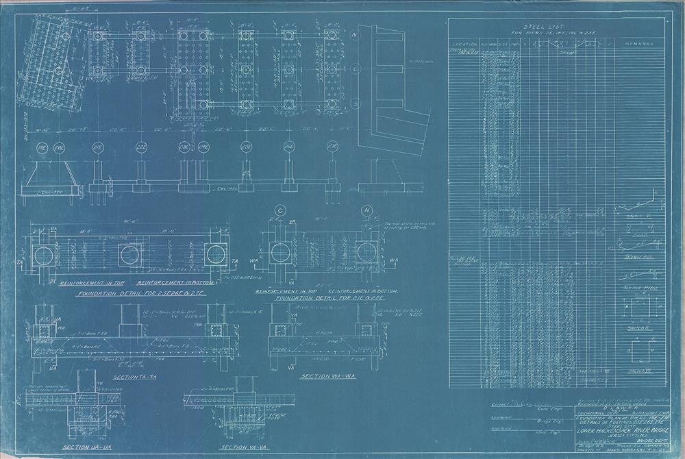 Lower Hackensack River Bridge--Foundation plan of pier nos. 19E to 27E--Details of footings 25E to 27E with steel list--Jersey City, NJ [1927.04.06] Sheet no. 11