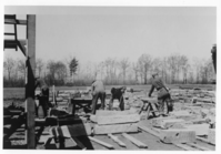 Construction of Ledges Shelter by Civilian Conservation Corps ca. 1934. See scan of writing on the back of each image for additional details. || Many of the historic structures in the Virginia Kendall unit of Cuyahoga Valley National Park were built by Civilian Conservation Corps workers during the 1930s.