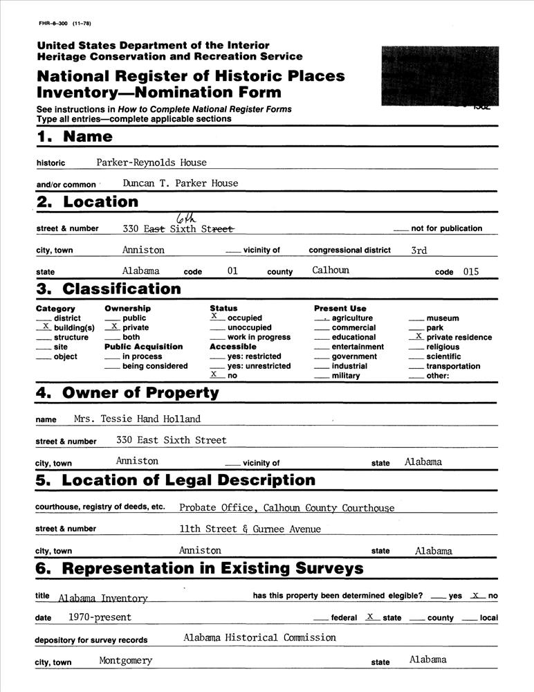 Anniston ; 330 E. 6th St.