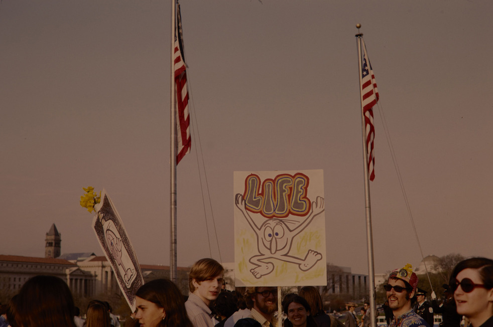 Demonstrations. Protestors at the National Capital Region Earth Day flag ceremony in Washington DC.