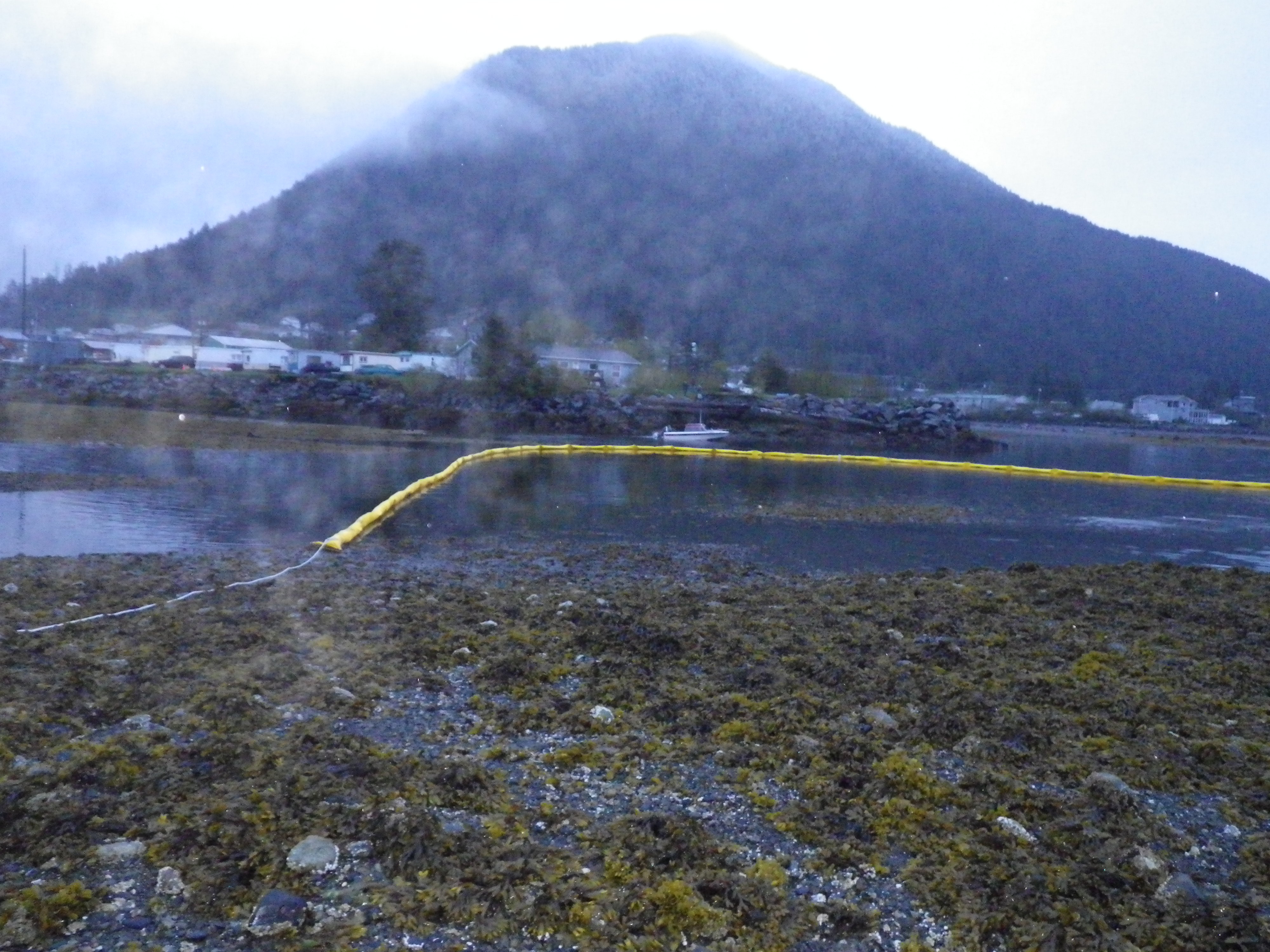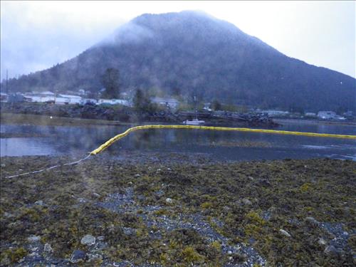 These pictures were taken by the US Coast Guard Oil Response team during spill response to the sinking of the Fishing Vessel (F/V) Igloo in mid-May 2012. The boom was intended to prevent surface oils from reaching the Indian River estuary and impacting park resources. Deployment was only partially effective, due to the boom being too short to complete oil exclusion.