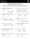 Quiz for National Park Women featuring multiple choice questions regarding women's history and an answer sheet.