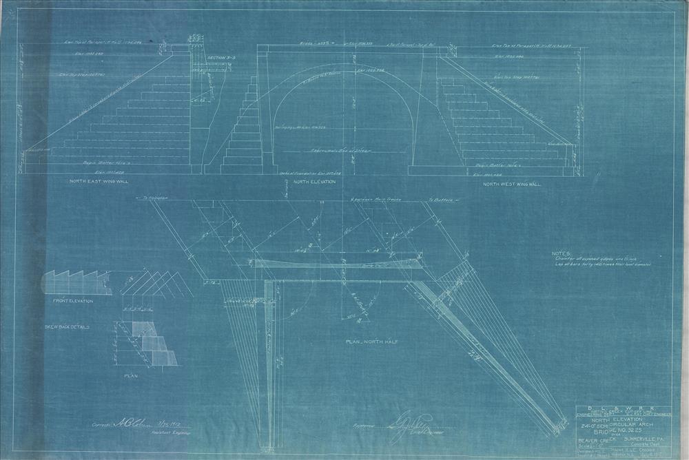 24-foot semicircular arch bridge no. 32.25 over Beaver Creek--North elevation--Summerville, PA [1912.07.06] Concrete Department, Sheet no. 1 of 2