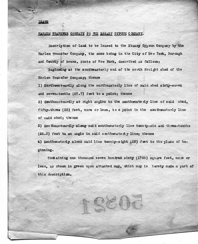 50821.BA#002--Harlem Transfer Company--Land to be leased to Ebsary Gypsum Company, Incorporated--Bronx, NY
