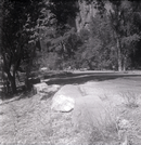 Stone guard on side of road along the scenic canyon drive near the Grotto. ; ZION Museum and Archives Image 002.03.05-6of37 ; ZION 15933
