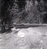 Sign stating 'Picnicking and camping only in established campground' near the Grotto. ; ZION Museum and Archives Image 002.03.05-10of37 ; ZION 15933