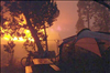 Night photos of a house burning during the Long Mesa fire in Mesa Verde National Park, July-August 2002