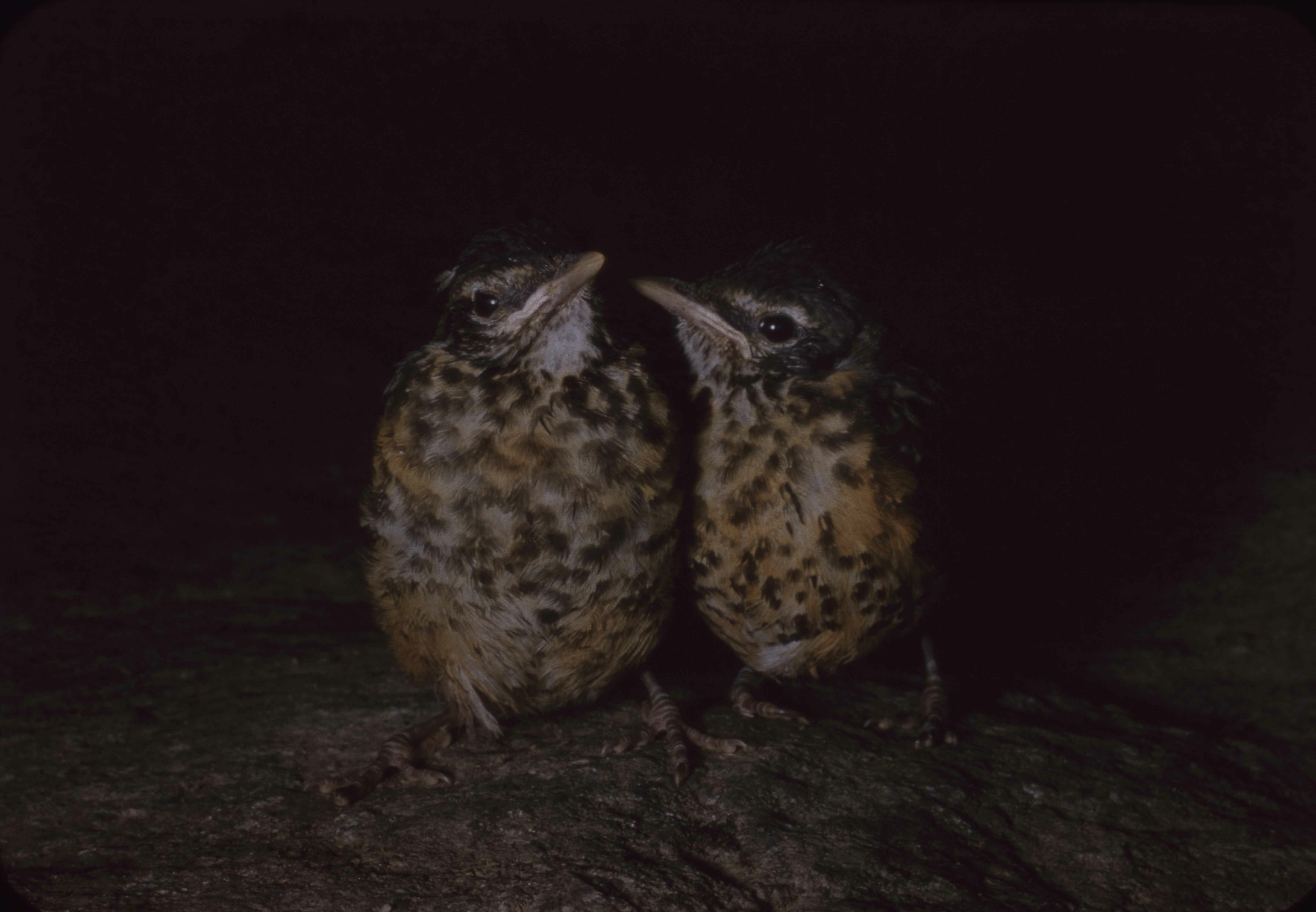 Young Robins Yos. Val. [Yosemite Valley]. #35. 9-30a- . MVH [Mary V Hood]. 6/25/1956 [25 June 1956]. Original. Public Domain. [Birds - American Robin]. E-03-63-014.