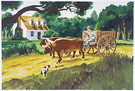 Oxen pulling cart.