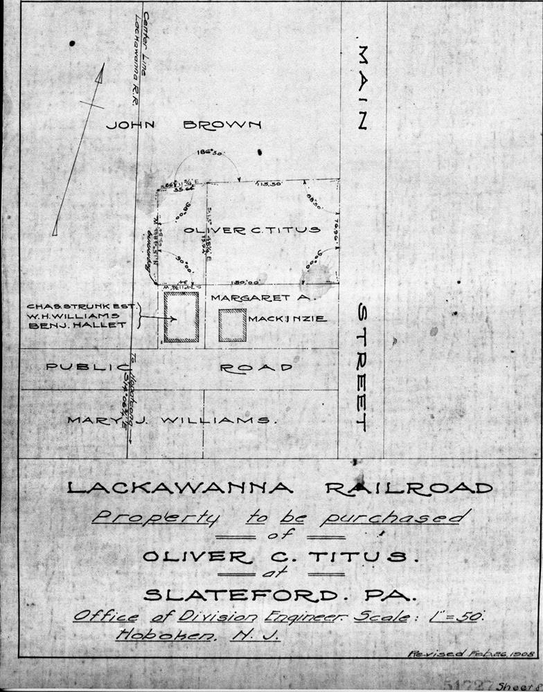 Property to be purchased of Oliver C.Titus--Slateford, PA [1908.02.26]