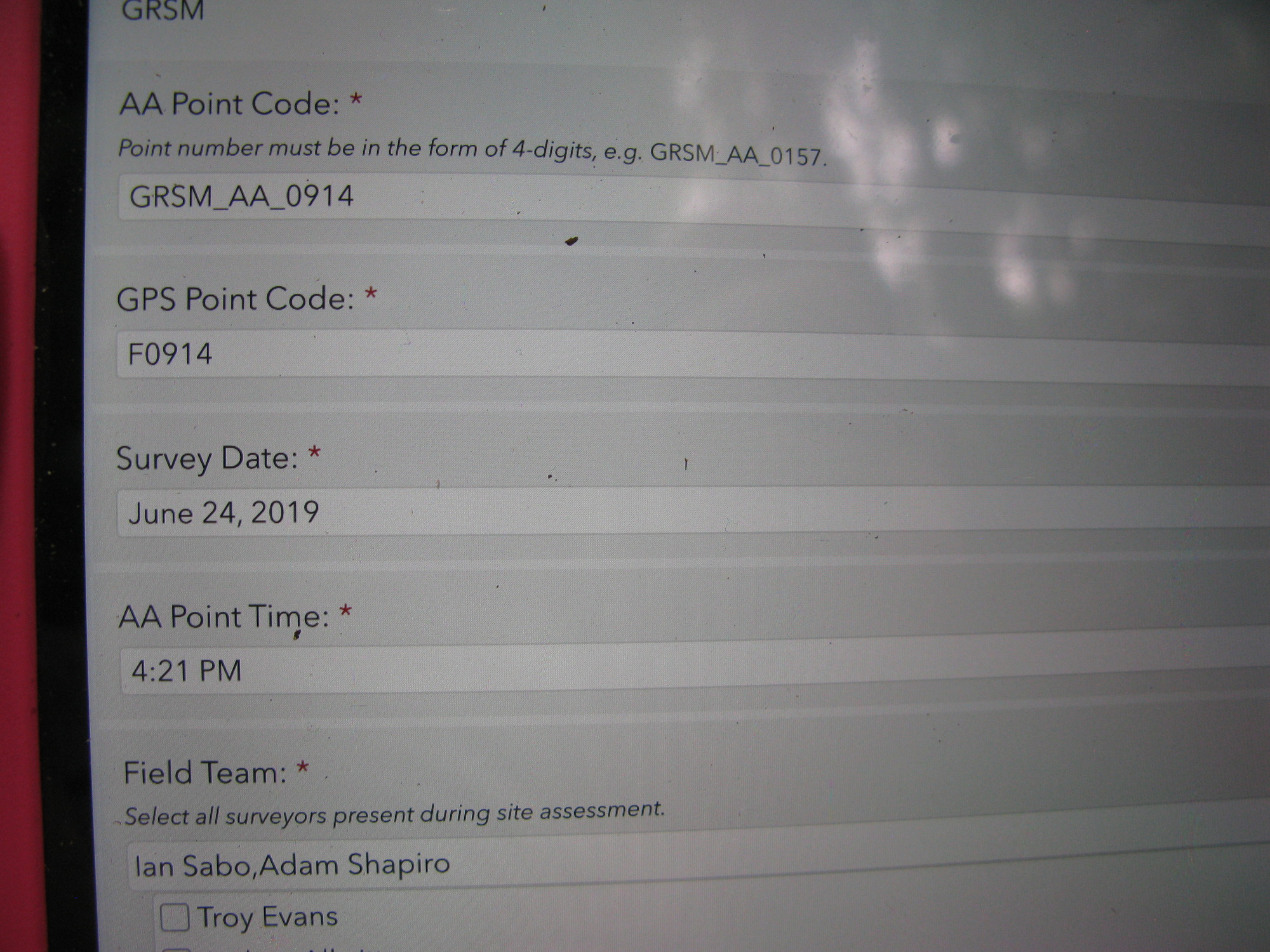 GRSM Accuracy Assessment. Plot Code: GRSM_AA_0914_1