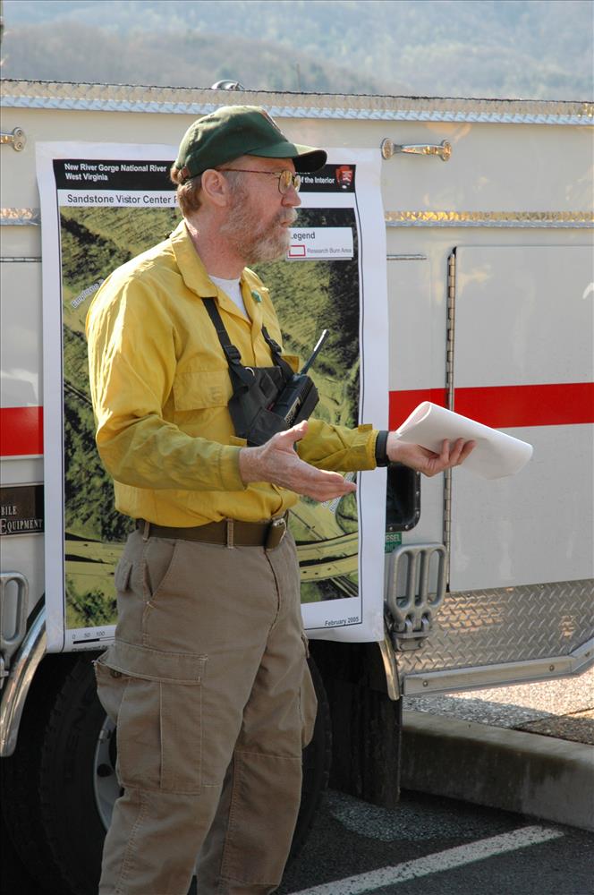 Prescribed fire activities near the Sandstone Visitor Center in New River Gorge National Park and Preserve in January 2007.