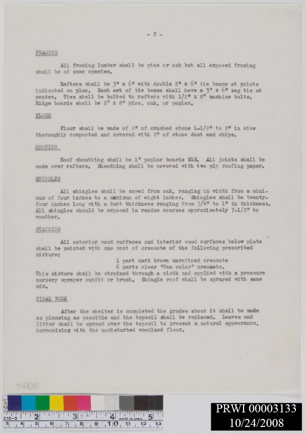 SHELTER, CRAFT. CAMP 3. JOB #270.<CRCAMP 3. INCLUDES JUSTIFICATION, SPECIFICATIONS. JOB APPLICATION & COMPLETION RECORD. MAN D<CRREVISIONS. MATERIALS LOCALLY PRODUCED AND PURCHASED. DISCRIPTION AND COST. MATERIALS FROM<CRFROM OTHER SOURCES.<CR#, THRU , SAME FILE FOLDER. CAMP 3. CORRESPONDENCE. REDUCTION OF CONTOUR LOCATION MAP.<CRSTAPLES, RUST, CARBON TRANSFER. YELLOW PAPER. TORN.