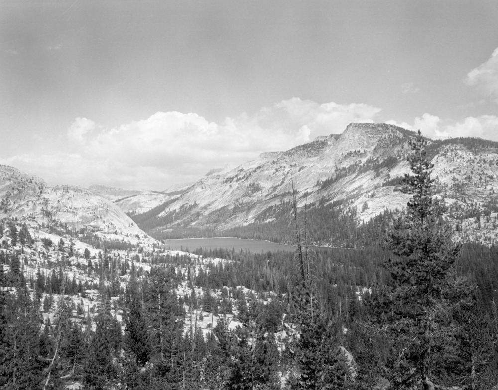 Two copy negatives possibly from Watkins originals. Top negative shows Tenaya Lake, bottom negative shows Tuolumne Meadows. From collection of Francis Farquhar; copied 12/November 1951.