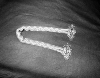 Mrs. Donald Segerstrom Collection. Object: Paiute (?) beaded section. Dimensions: 26 1/4". Materials: Transparent clear and blue beads, white thread. Technology: Single thread loomwork. Photographed by Michael Dixon. Catalogued by Craig Bates and Barbara B