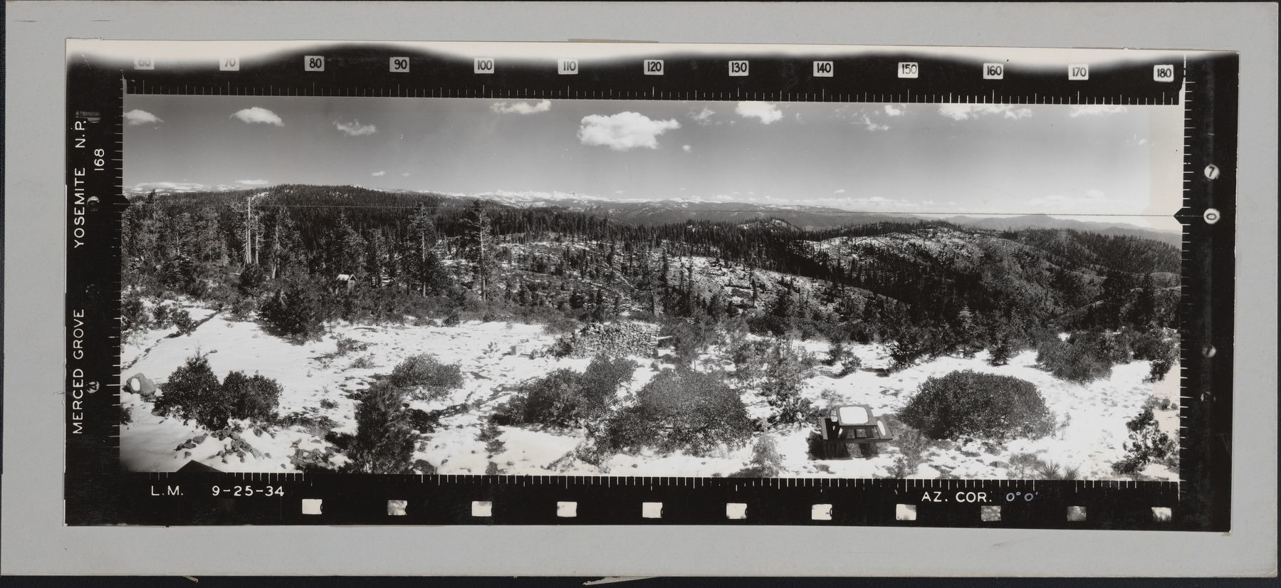 Source: Extended Description Content: These photographs provide excellent documentation of Yosemite’s topography in the 1930s. Covering 120 degrees of the horizon, they were utilized for many decades by Yosemite lookouts to accurately locate forest fires. Today, in addition to conveying information about historic road and trail locations, changes in vegetation and landscape, and geomorphology, they provide a visual juxtaposition to later photographs that is useful for a variety of scientific, management, and administrative purposes.